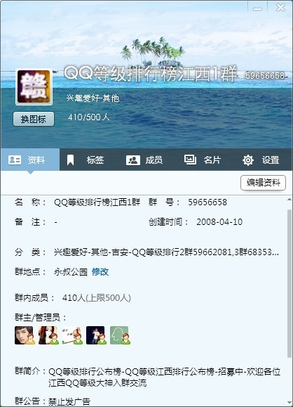 QQ等级江西排行①群59656658 (上限1000已开通),②群59662081 ,③群68353690,江西人看到一定要加啊,涉及内容江西老乡群-QQ等级排行公布榜-QQ等级江西排行公布榜,群主QQ:280008739,诚邀各位QQ等级大神加盟入群交流。