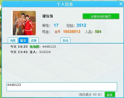 点击游戏界面上的“给TA留言”,留下你的QQ号码!